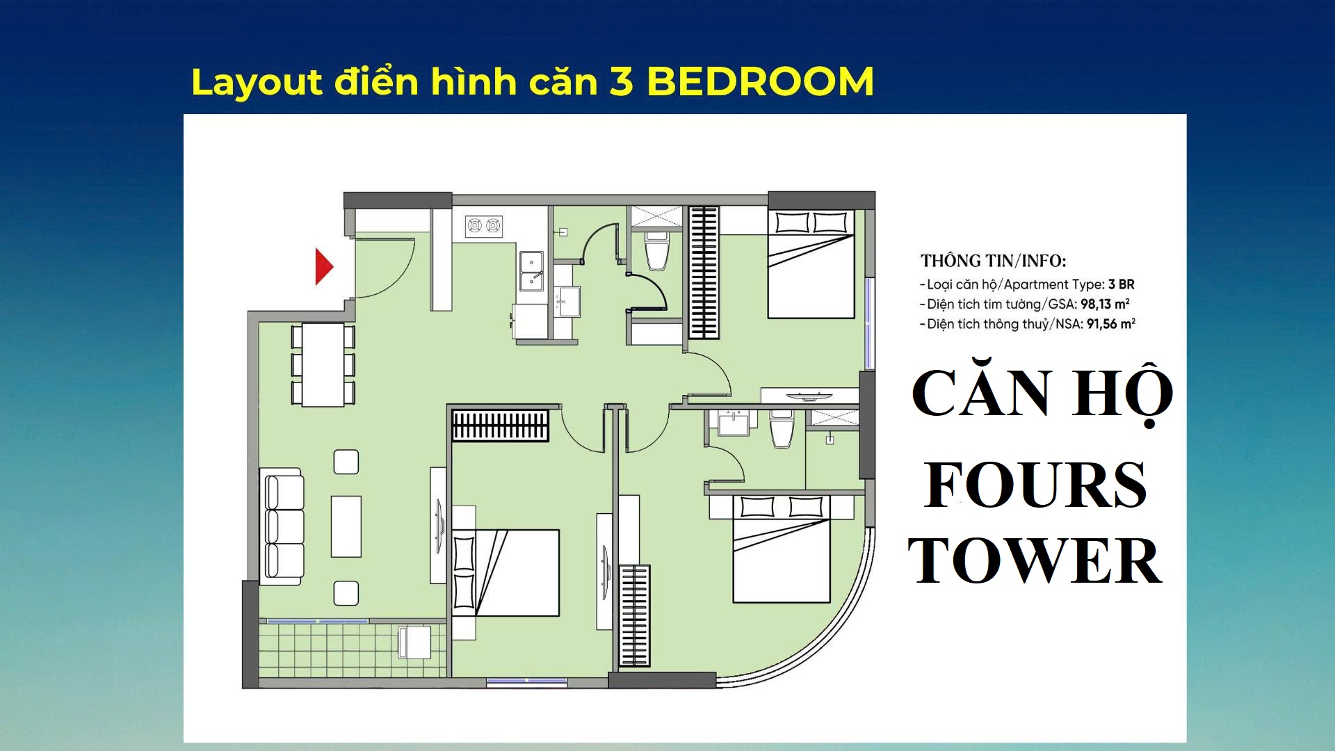 CĂN GÓC FOURS TOWER 2 PN VIEW BIỂN – 3 TỶ 263